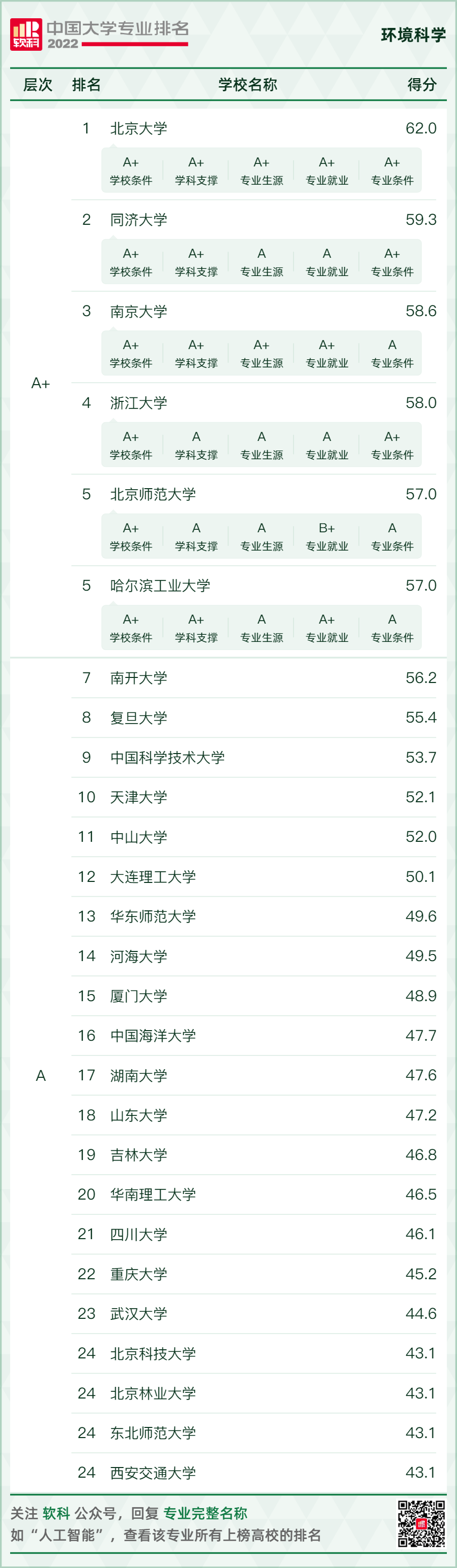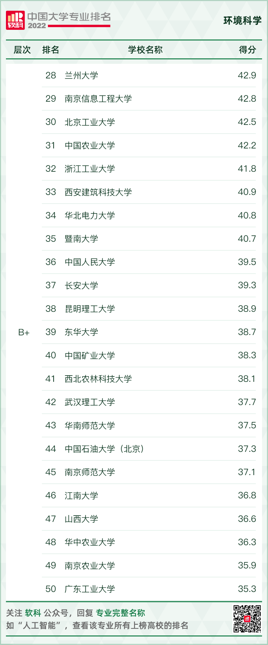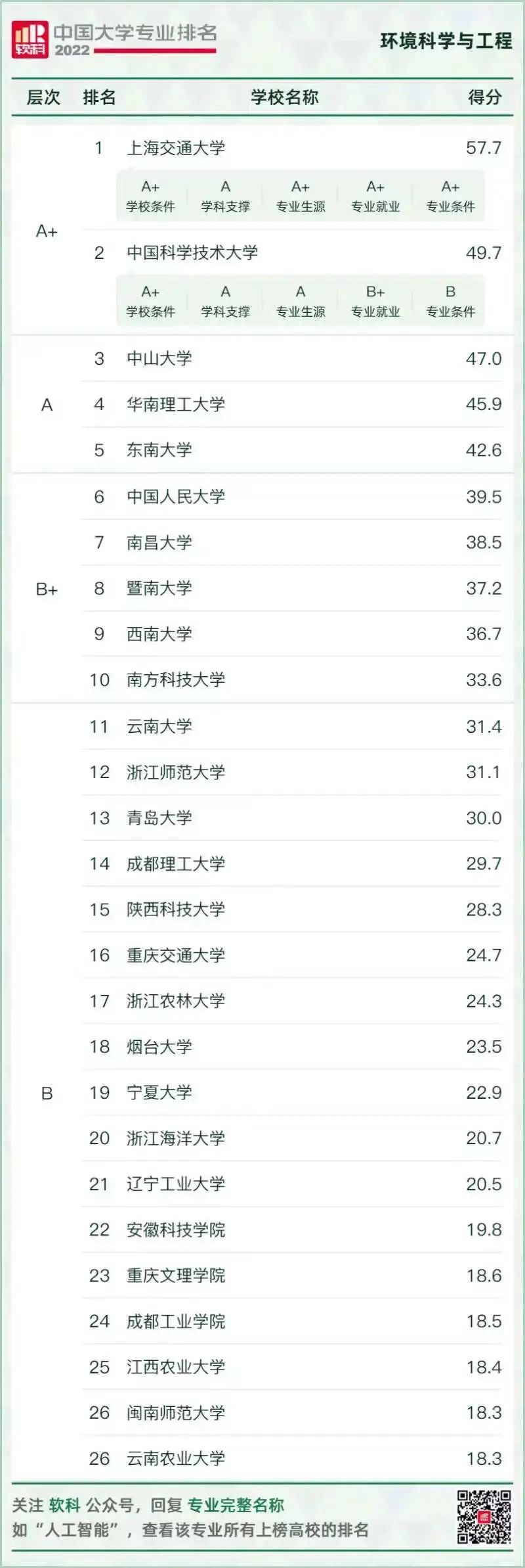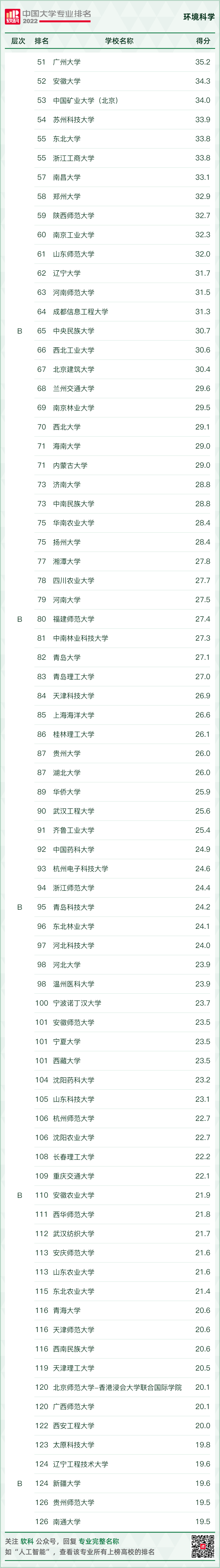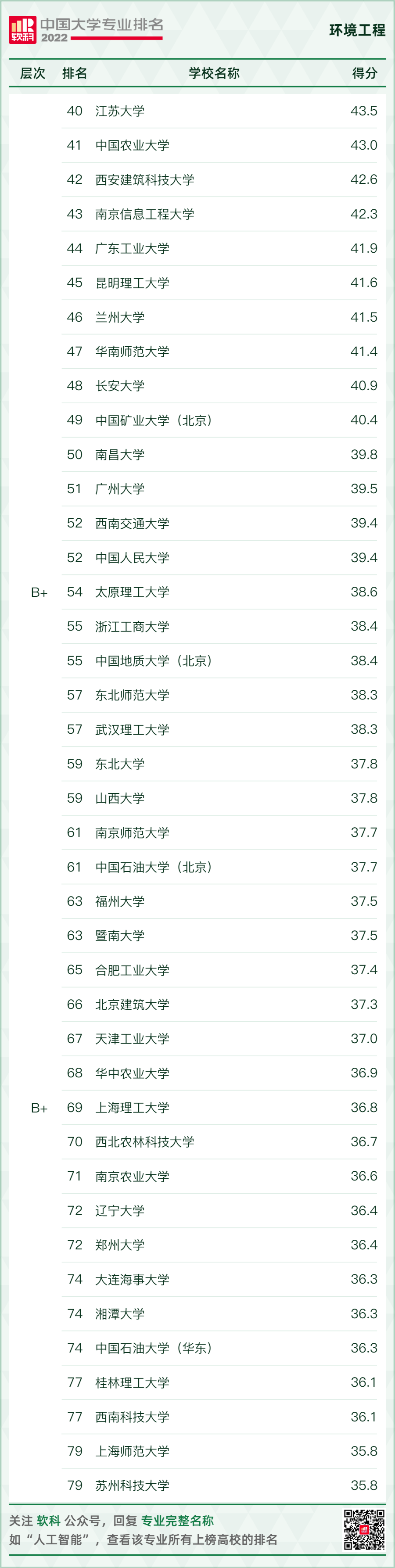 環(huán)境科學(xué)與工程類專業(yè)排名情況如下: