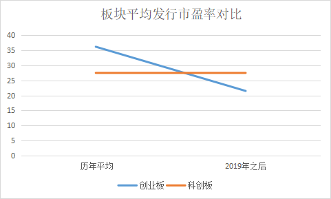 從兩個(gè)板塊對(duì)比看,科創(chuàng)板企業(yè)的平均發(fā)行市盈率約為27.5,創(chuàng)業(yè)板企業(yè)的的平均發(fā)行市盈率約為36.2,比科創(chuàng)板高35.2%??紤]到科創(chuàng)板企業(yè)都是2019年之后上市的,以2019年之后上市企業(yè)統(tǒng)計(jì),則創(chuàng)業(yè)板企業(yè)的平均發(fā)行市盈率約為21.5,比科創(chuàng)板企業(yè)低了將近21%。