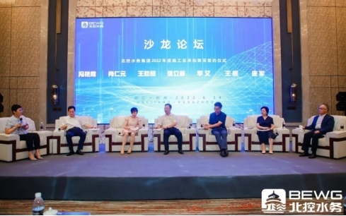 2022年6月24日,北控水務(wù)集團(tuán)2022年度施工總承包集中采購簽約儀式在杭州成功舉行,就重塑雙方合作關(guān)系、推動(dòng)高質(zhì)量發(fā)展、共創(chuàng)水務(wù)產(chǎn)業(yè)聯(lián)盟,以沙龍的形式深入討論,并達(dá)成共識(shí)。會(huì)上,中鐵四局集團(tuán)有限公司、中鐵隆工程集團(tuán)有限公司、中鐵上海工程局集團(tuán)有限公司與北控水務(wù)簽署年度合作框架協(xié)議,雙方將加快在項(xiàng)目實(shí)施、品質(zhì)交付、標(biāo)準(zhǔn)建立、管理和技術(shù)創(chuàng)新等方面深入合作,整合優(yōu)質(zhì)資源,構(gòu)建生態(tài)共贏、可持續(xù)發(fā)展的戰(zhàn)略聯(lián)盟。自此,北控水務(wù)與各合作伙伴開啟新的合作模式。