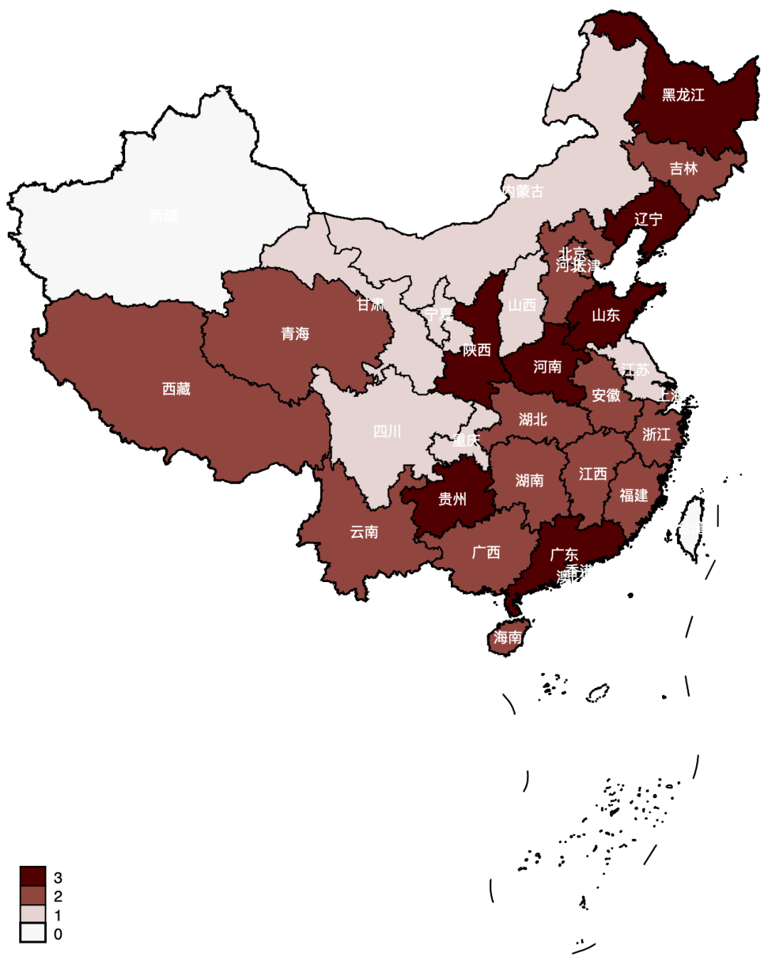 地區(qū)上看,中央環(huán)保督察組進駐的31個省區(qū)市中,除新疆維吾爾自治區(qū)(含新疆生產(chǎn)建設(shè)兵團)外,其余30個省區(qū)市均被反饋過生活垃圾問題。其中,河南省、山東省、遼寧省、廣東省、山西省、貴州省和黑龍江省最為突出,在3次中央環(huán)保督察中均被反饋了生活垃圾問題,詳見圖2。