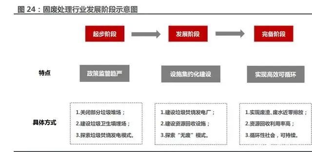 我們將固廢處理行業(yè)分為起步階段、發(fā)展階段、完備階段三個(gè)歷程?!笆濉?期間,隨著項(xiàng)目加快推進(jìn),固廢處理能力得到迅速提升,在固廢處理的“量”上, 現(xiàn)有項(xiàng)目已滿(mǎn)足基本處理需求;“十四五”期間,結(jié)合減污降碳的目標(biāo),在固廢處 理上,將更注重固廢處理“質(zhì)”的提升。目前,我國(guó)固廢行業(yè)正處于由發(fā)展階段向 完備階段升級(jí)的過(guò)程,對(duì)于資源回收和近零排放提出更高的需求。2021 年 12 月國(guó)家發(fā)改委等 18 部委聯(lián)合發(fā)布《“十四五”時(shí)期“無(wú)廢城市”建設(shè)工作方案》,提出推動(dòng) 100 個(gè)左右地級(jí)及以上城市開(kāi)展“無(wú)廢城市”建設(shè);到 2025 年,“無(wú)廢城市”固體廢物產(chǎn)生強(qiáng)度較快下降,綜合利用水平顯著提升,無(wú)害 化處置能力有效保障,減污降碳協(xié)同增效作用充分發(fā)揮,基本實(shí)現(xiàn)固體廢物管理信 息“一張網(wǎng)”。