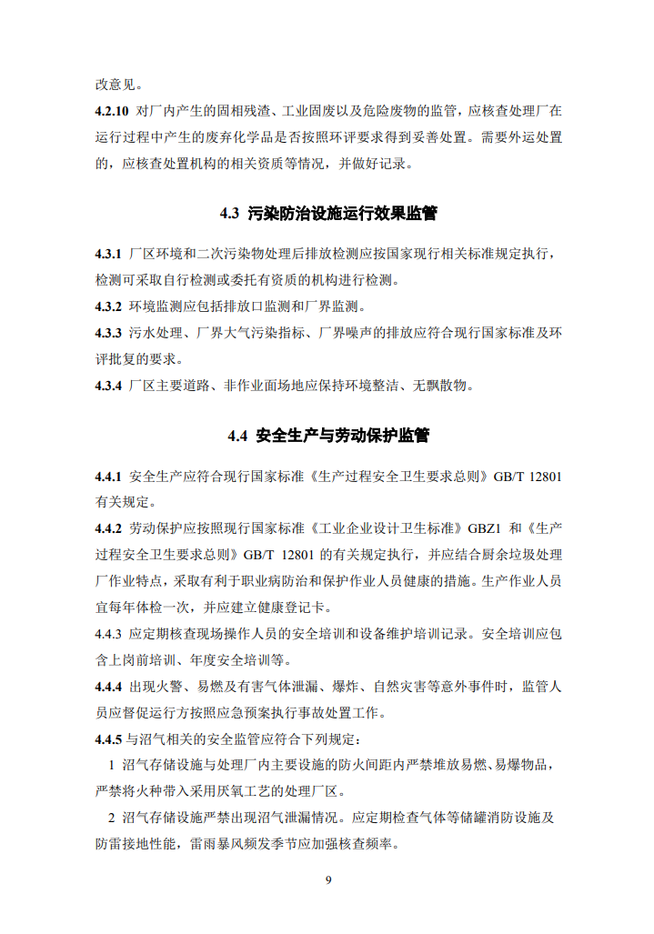 其中,主處理采用厭氧消化工藝時,應對厭氧消化系統、沼氣凈化及存儲設施的運行進行監(jiān)管,并符合下列規(guī)定: