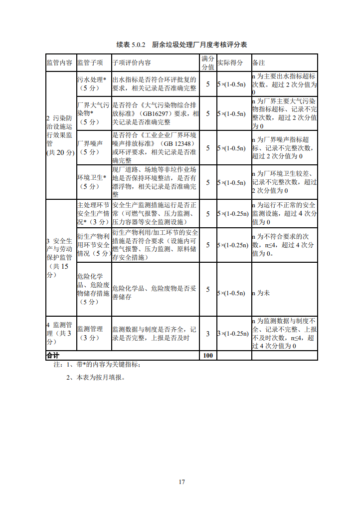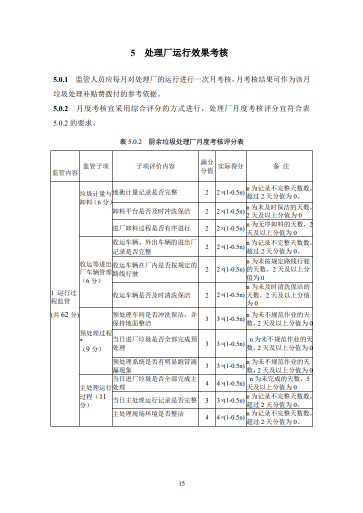 標準指出,監(jiān)管人員應每月對處理廠的運行進行一次月考核,月考核結果可作為該月垃圾處理補貼費撥付的參考依據。