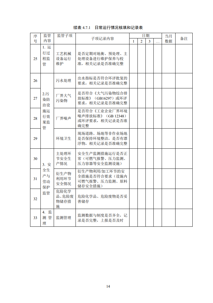 標準指出,處理廠的監(jiān)管內容應包括處理廠生產運行全過程、污染防治設施運行效果、安全生產與勞動保護、監(jiān)測管理、資料管理等。尤其對下列情況應實施重點監(jiān)管: