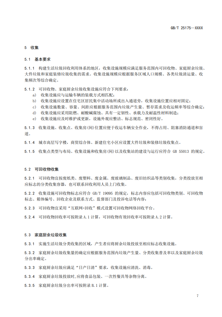 5、收集點(diǎn)類型與布局、收集設(shè)施和收集房(間)以及收集站的建設(shè)與運(yùn)行應(yīng)符合GB55013的規(guī)定。