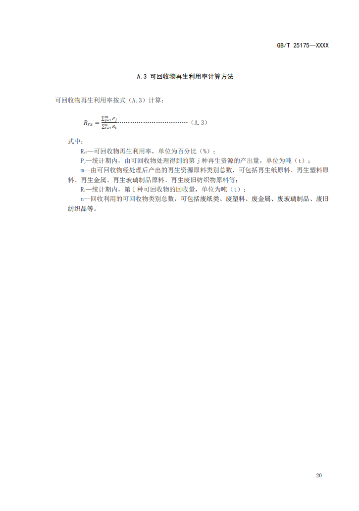 8、可回收物再生利用率可按附錄A.3計(jì)算。