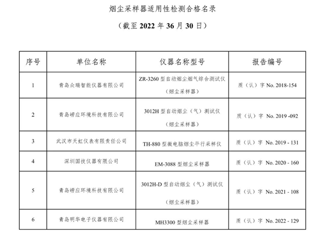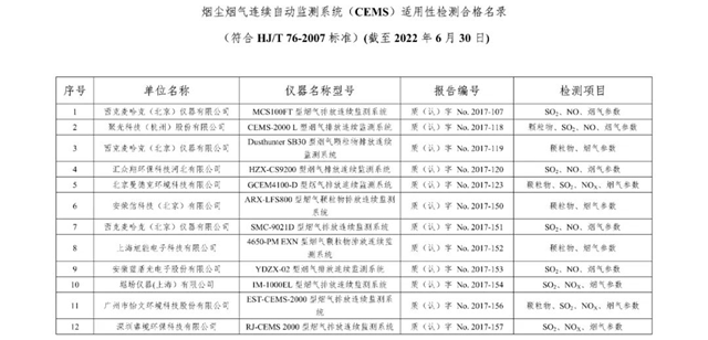 中國環(huán)境監(jiān)測總站發(fā)布廢氣類適用性檢測合格名錄(截至2022年6月30日)