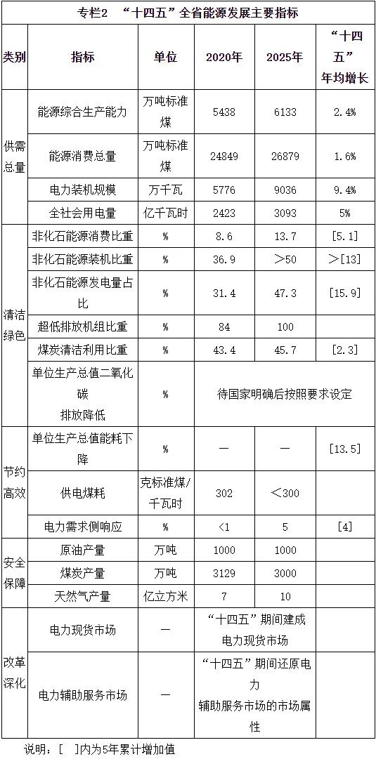 按照構(gòu)建清潔低碳、安全高效的現(xiàn)代能源體系和著力建設(shè)清潔能源強(qiáng)省的目標(biāo)要求,到“十四五”末全省能源發(fā)展主要目標(biāo)是: