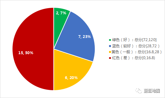 圖 2 30城市得分等級(jí)占比
