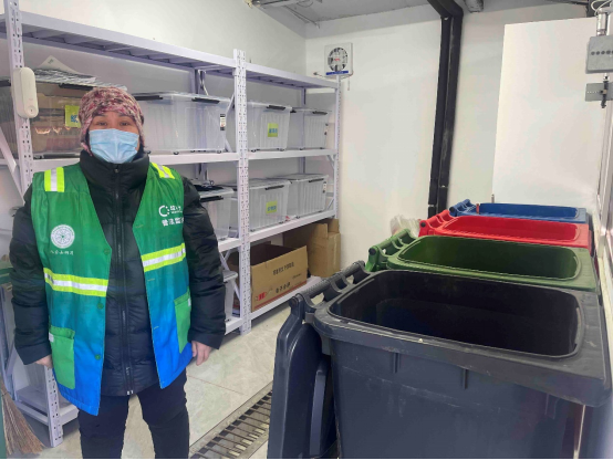 圖12 北京市石景山區(qū)永樂(lè)小區(qū)垃圾分類(lèi)驛站的垃圾分類(lèi)普法監(jiān)督員,攝影:李澤軍_1106794,拍攝時(shí)間:2022年3月4日