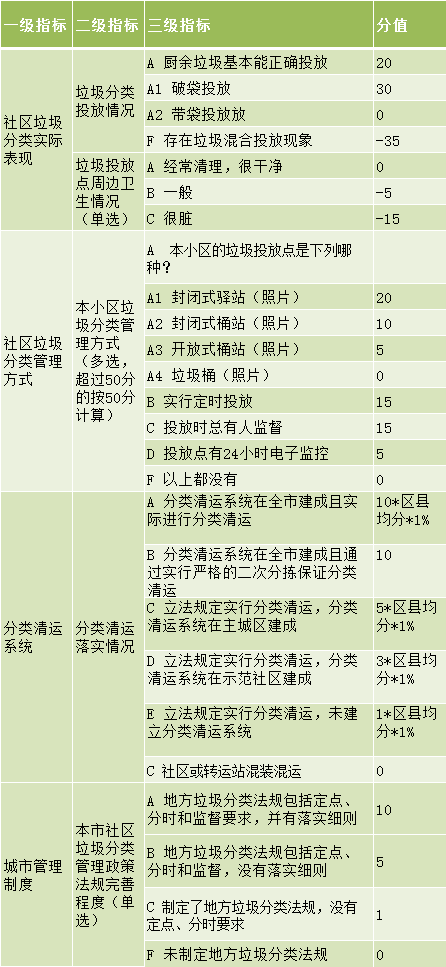 附錄3 垃圾分類(lèi)指數(shù)評(píng)分標(biāo)準(zhǔn)