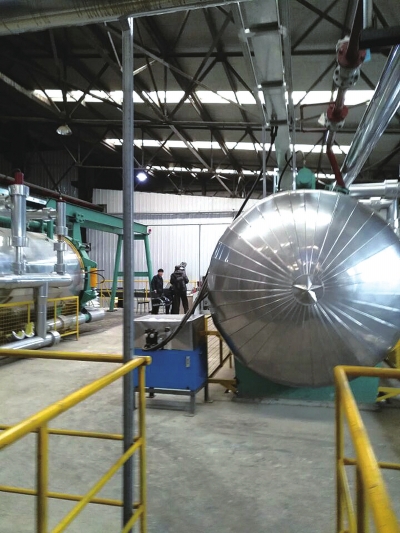 進入廠區(qū),現(xiàn)代化的廠房、辦公樓和景觀綠化,似乎和餐廚垃圾處理工廠不相符。更讓人意外的是,從設(shè)有辦公、實驗、生產(chǎn)控制中心、會議室、生產(chǎn)流程演示、產(chǎn)品成列等功能的現(xiàn)代化辦公樓出來后,走進生產(chǎn)車間,除了可見4個大型餐廚垃圾喂料口外(即餐廚垃圾運輸車傾倒口),全是大型箱體、罐體,以及各種粗細的管子相連,一道道工序?qū)崿F(xiàn)了自動化,看不見一點餐廚垃圾,這里像一座現(xiàn)代化的啤酒車間?!巴耆珜崿F(xiàn)了自動化。”