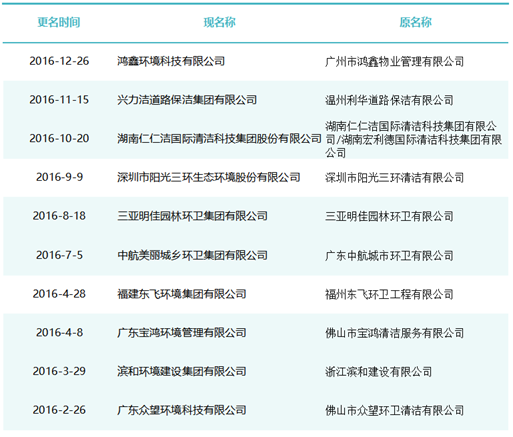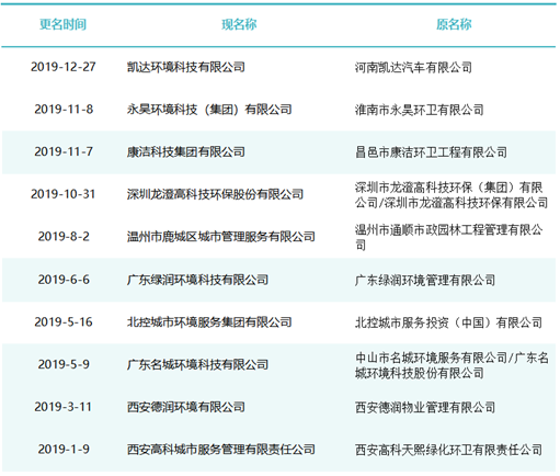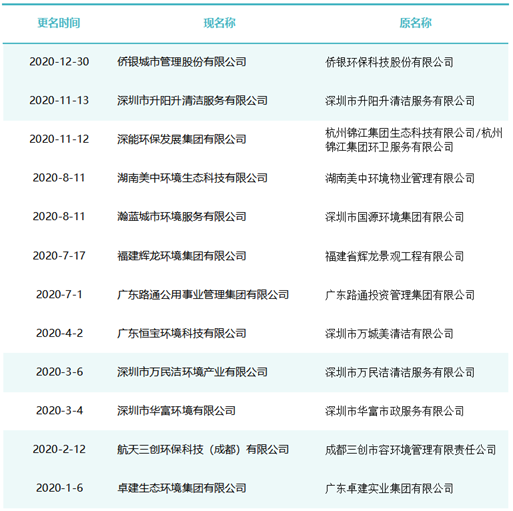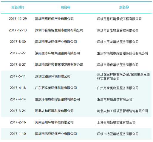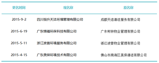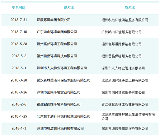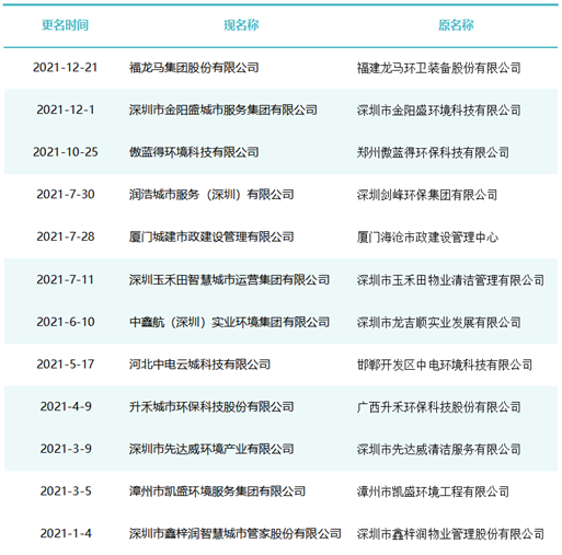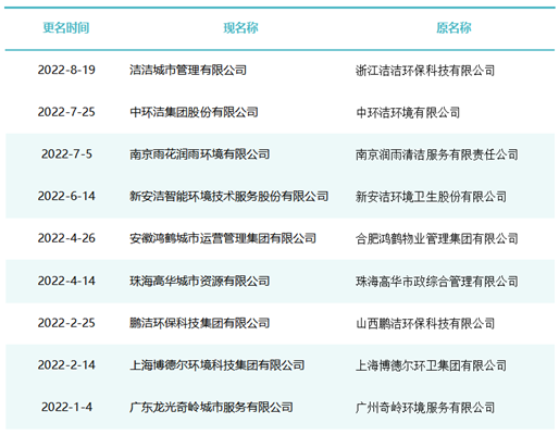 作為玉禾田[300815]最主要的環(huán)衛(wèi)項目投標主體,玉禾田物業(yè)清潔公司在名稱上用“智慧城市運營”替換“物業(yè)清潔”,則是希望轉(zhuǎn)型邁向智慧城市運營商之路。司南君在對近八年的更名規(guī)律進行總結(jié)與梳理發(fā)現(xiàn),環(huán)衛(wèi)企業(yè)“更名潮”大概可以分為三個階段。第一波更名潮從2015-2018年。第一波更名潮追求專業(yè)化發(fā)展道路,這個時期的更名熱詞是“環(huán)境服務(wù)”、“環(huán)境科技”、”環(huán)保產(chǎn)業(yè)“、“環(huán)保技術(shù)”,一大批清潔公司、保潔公司、環(huán)衛(wèi)公司、物業(yè)公司更名為“環(huán)境服務(wù)公司”、“環(huán)境科技公司”、”環(huán)保技術(shù)公司“。第二波更名潮從2019年到2021年。第二波更名潮集體轉(zhuǎn)向城市綜合服務(wù)方向。這一時期的更名熱點是“城市管理”、“城市服務(wù)”、“城市管家”、“智慧城市運營”、“公共事業(yè)管理”等,用這些熱詞替代“環(huán)保技術(shù)”、“環(huán)衛(wèi)服務(wù)”、“環(huán)境科技”、“環(huán)境服務(wù)”等傳統(tǒng)環(huán)衛(wèi)詞匯。進入2022年度,環(huán)衛(wèi)企業(yè)迎來第三波更名潮。今后一定時期,環(huán)衛(wèi)行業(yè)的發(fā)展將面臨多重挑戰(zhàn),環(huán)衛(wèi)企業(yè)更名也將更富多元化,因此企業(yè)更名也必將根據(jù)每家公司對行業(yè)發(fā)展的理解認識及自身戰(zhàn)略定位而各有側(cè)重。2015年到2018年是環(huán)衛(wèi)市場化第一波大發(fā)展時期。這期間,環(huán)衛(wèi)市場化大閘初步敞開,PPP模式引入環(huán)衛(wèi)領(lǐng)域,城鄉(xiāng)環(huán)衛(wèi)一體化模式如火如荼,年化額超千萬元、合同額超億元的環(huán)衛(wèi)大標開始批量出現(xiàn),傳統(tǒng)物業(yè)清潔企業(yè)、非環(huán)衛(wèi)類物業(yè)公司大量涌入環(huán)衛(wèi)行業(yè)。因此,環(huán)衛(wèi)企業(yè)第一波更名潮追求專業(yè)化發(fā)展道路,這個時期的更名熱詞是“環(huán)境服務(wù)”、“環(huán)境科技”、”環(huán)保產(chǎn)業(yè)“、“環(huán)保技術(shù)”,一大批清潔公司、保潔公司、環(huán)衛(wèi)公司、物業(yè)公司更名為“環(huán)境服務(wù)公司”、“環(huán)境科技公司”、”環(huán)保技術(shù)公司“。這期間有近40家百強企業(yè)或日后發(fā)展成百強企業(yè)的環(huán)衛(wèi)公司完成了更名,如福建東飛環(huán)境集團有限公司、濱南生態(tài)環(huán)境集團股份有限公司、北京慧豐清軒環(huán)境科技集團有限公司、河北人和環(huán)境科技有限公司、浙江波普環(huán)境服務(wù)有限公司、深圳市陽光三環(huán)生態(tài)環(huán)境股份有限公司、深圳世路源環(huán)境有限公司(深兄環(huán)境)、廣東美保環(huán)境技術(shù)有限公司、泓欣環(huán)境集團有限公司等。第二波:從“環(huán)衛(wèi)服務(wù)”到“城市管家”2019年到2021年是“環(huán)衛(wèi)市場化”高潮向“城市大管家模式”的轉(zhuǎn)型期初期。這期間,環(huán)衛(wèi)市場化從大發(fā)展走向大高潮,城市精細化管理從“理念”走向“實踐”,各路國有物業(yè)公司積極推動城市大管家模式,大批頭部物管企業(yè)通過大并購等方式搶灘環(huán)衛(wèi)及城市服務(wù)市場。由此,順應(yīng)時代大潮,環(huán)衛(wèi)企業(yè)第二波更名潮集體轉(zhuǎn)向城市綜合服務(wù)方向。這一時期的更名熱點是“城市管理”、“城市服務(wù)”、“城市管家”、“智慧城市運營”、“公共事業(yè)管理”等,用這些熱詞替代“環(huán)保技術(shù)”、“環(huán)衛(wèi)服務(wù)”、“環(huán)境科技”、“環(huán)境服務(wù)”等傳統(tǒng)環(huán)衛(wèi)詞匯。這期間有40余家知名環(huán)衛(wèi)企業(yè)完成了更名,如僑銀城市管理股份有限公司、北控城市環(huán)境服務(wù)集團有限公司、深圳玉禾田智慧城市運營集團有限公司、深圳市鑫梓潤智慧城市管家股份有限公司、康潔科技集團有限公司、西安高科城市服務(wù)管理有限責(zé)任公司、溫州市鹿城區(qū)城市管理服務(wù)有限公司、廣東路通公用事業(yè)管理集團有限公司、深圳市金陽盛城市服務(wù)集團有限公司。第三波:多重挑戰(zhàn)并存轉(zhuǎn)型期進入2022年度,環(huán)衛(wèi)企業(yè)迎來第三波更名潮。這一時期也將是城市管家模式完成第一輪測試后的大發(fā)展時期。圖表8:2022年度更名“百強企業(yè)”(截止2022年8月份)今后一定時期,環(huán)衛(wèi)行業(yè)的發(fā)展將面臨多重挑戰(zhàn):(一)以電動環(huán)衛(wèi)車、氫能環(huán)衛(wèi)車等為代表的“新能源化”;(二)以智慧環(huán)衛(wèi)與無人操作環(huán)衛(wèi)裝備為代表的“智能化”;(三)以城市大管家為代表的城市管理“精細化”;(四)以智慧市政、智慧城市為代表的“平臺化”;(五)以新型城鎮(zhèn)化和城鄉(xiāng)融合發(fā)展為代表的“全域化”;(六)城鄉(xiāng)生活垃圾分類“常態(tài)化”……這一時期有太多的不確定性,環(huán)衛(wèi)企業(yè)更名也將更富多元化,因此企業(yè)更名也必將根據(jù)每家公司對行業(yè)發(fā)展的理解認識及自身戰(zhàn)略定位而各有側(cè)重。其實,這個特點,從最近更名的“新安潔”和“中環(huán)潔”的新名稱可見一斑?!靶掳矟崱备靶掳