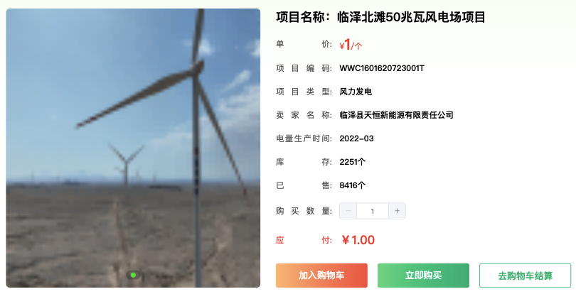 而這個標價1元的風電綠證,已售出8416個,庫存僅2251個。