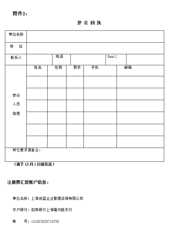 附件2:參會回執(zhí)及賬戶信息