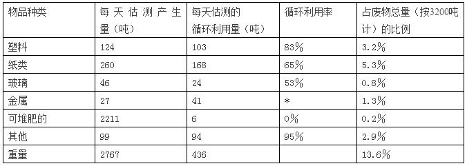 *由于數(shù)據(jù)采集時,將市內(nèi)工廠對從市外運送來的金屬進行的循環(huán)利用計算在內(nèi),所以循環(huán)利用量高于金屬廢物的產(chǎn)生量。