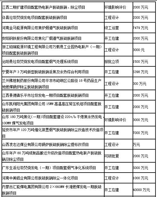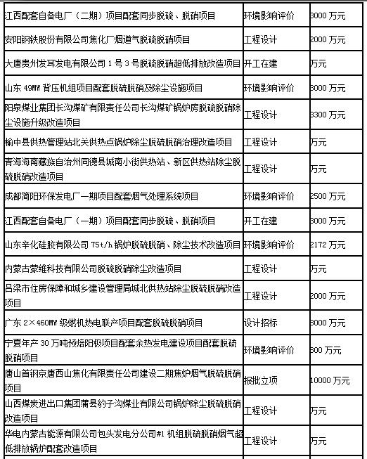 2017年11月份全國擬在脫硫脫硝、水處理項目匯總,涉及脫硫脫硝、煙氣處理等環(huán)保項目。