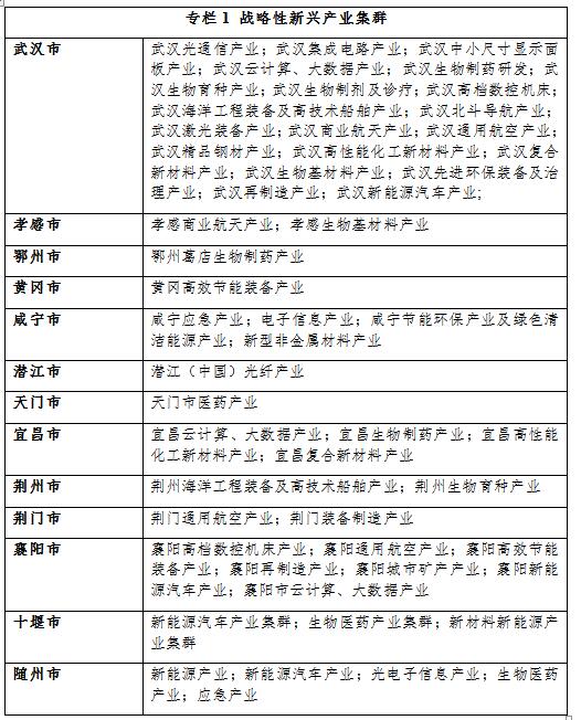 全面推進(jìn)“一主兩副多極”城市帶動(dòng)戰(zhàn)略,發(fā)揮武漢、襄陽(yáng)、宜昌等中心城市產(chǎn)業(yè)優(yōu)勢(shì)和輻射帶動(dòng)作用,以國(guó)家級(jí)、省級(jí)開發(fā)區(qū)為主要載體,完善區(qū)內(nèi)和區(qū)外的產(chǎn)業(yè)鏈,建設(shè)世界級(jí)汽車、電子信息、工程設(shè)計(jì)施工產(chǎn)業(yè)集群,打造主導(dǎo)產(chǎn)業(yè)特色突出、優(yōu)勢(shì)明顯的長(zhǎng)江現(xiàn)代產(chǎn)業(yè)集聚帶。
