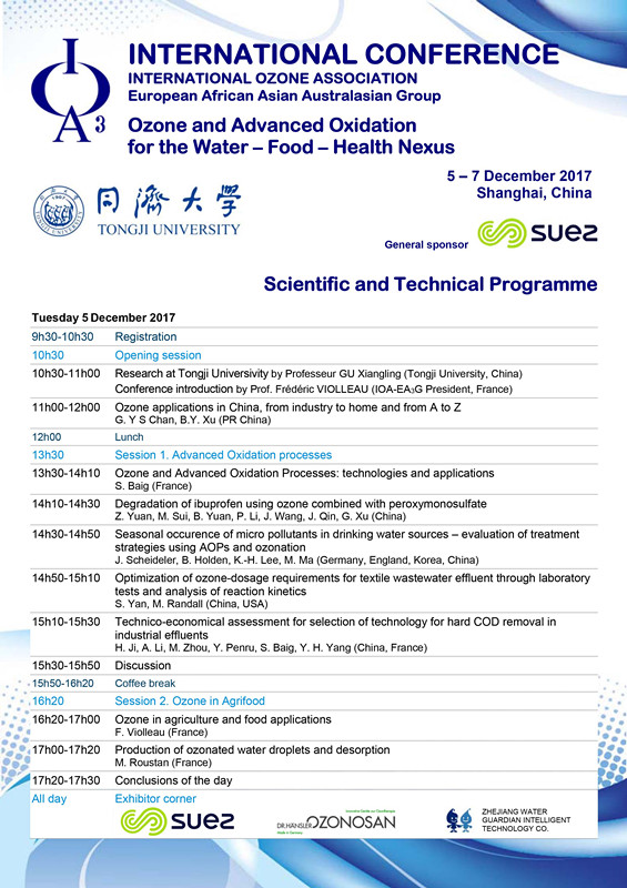 由國(guó)際臭氧協(xié)會(huì)(International Ozone Association European African Asian Australasian Group, IOA-EA3G)和同濟(jì)大學(xué)聯(lián)合舉辦的“臭氧和高級(jí)氧化技術(shù):水、食品與健康”國(guó)際研討會(huì),將于12月5-7日在上海同濟(jì)大學(xué)召開,我們誠(chéng)摯地邀請(qǐng)您撥冗參加。
