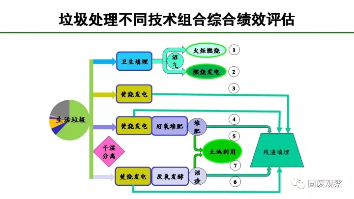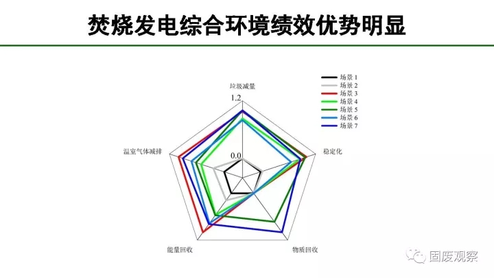 根據(jù)我們做的垃圾處理不同技術(shù)組合綜合績(jī)效評(píng)估,生活垃圾處理最理想的方式是通過(guò)焚燒、堆肥后最終讓垃圾回到土地利用,但是如果還無(wú)法為廚余找到土地回用出路的話,焚燒是目前階段最適合的方法,其在垃圾減量、溫室氣體減排、能量回收和穩(wěn)定化四個(gè)方面的綜合評(píng)估都遙遙領(lǐng)先。