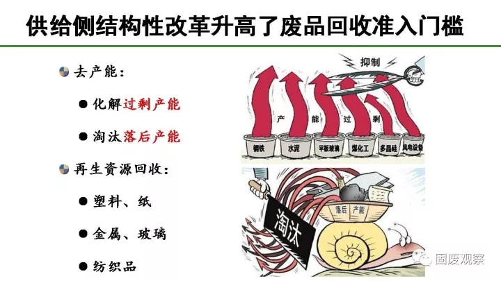 短缺經(jīng)濟(jì)時(shí)代與過(guò)剩經(jīng)濟(jì)時(shí)代,自力更生時(shí)代與全球化時(shí)代,環(huán)境容量大的時(shí)代與環(huán)境容量小的時(shí)代,分類回收策略不同。我們目前廢品回收行業(yè)大多只能生產(chǎn)低端產(chǎn)品,但市場(chǎng)越來(lái)越小了。相當(dāng)一批廢品回收企業(yè)屬“散亂污”,以污染環(huán)境為代價(jià)維持生產(chǎn)獲取利潤(rùn)。在此輪環(huán)保督察中,大批廢品回收利用企業(yè)因環(huán)保不達(dá)標(biāo)或無(wú)污染防止設(shè)施被關(guān)停。