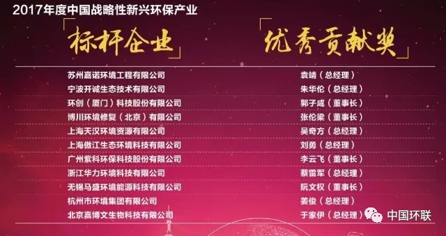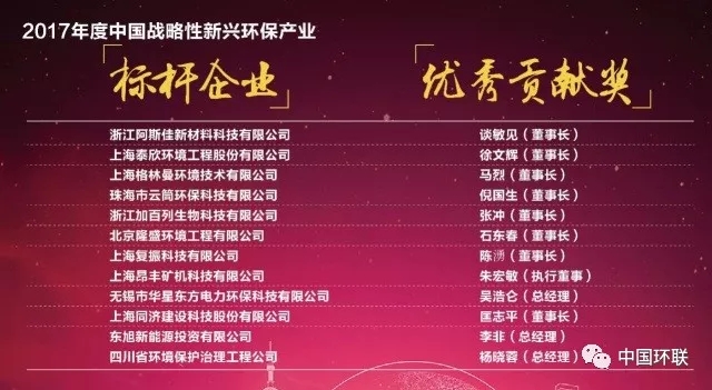 2017年度中國(guó)戰(zhàn)略性新興環(huán)保產(chǎn)業(yè)標(biāo)桿企業(yè)與優(yōu)秀貢獻(xiàn)獎(jiǎng)