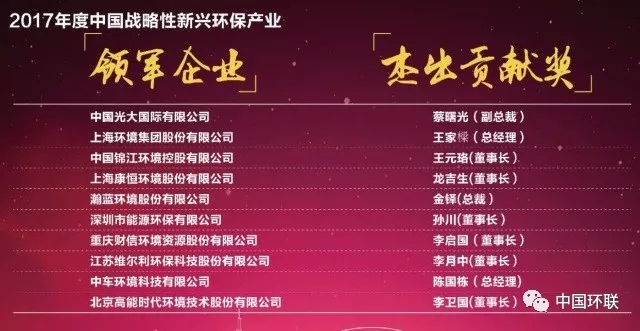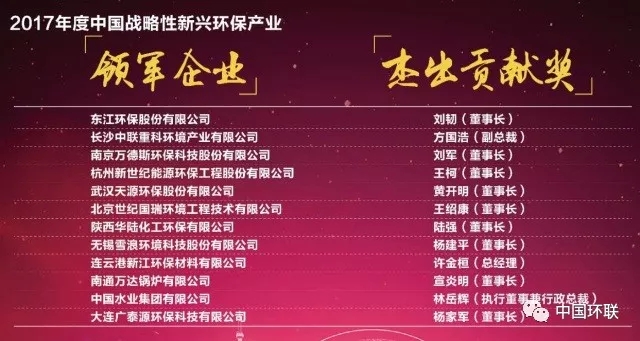 2017年度中國(guó)戰(zhàn)略性新興環(huán)保產(chǎn)業(yè)領(lǐng)軍企業(yè)與杰出貢獻(xiàn)獎(jiǎng)