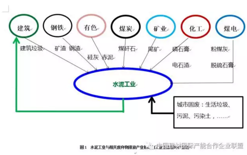 水泥工業(yè)綜合利用工業(yè)固體廢物的歷史悠久。有多少工業(yè)產(chǎn)業(yè)的固廢要依賴水泥工業(yè)和水泥制品產(chǎn)業(yè)安全處置和資源化綜合利用呢?實(shí)在太多,筆者無法作全面統(tǒng)計,尤其是各種工業(yè)過程產(chǎn)生的危險廢棄物,但是圖1中所列出的相關(guān)產(chǎn)業(yè)已足夠令人有一個大觀。據(jù)2010年的數(shù)據(jù),水泥工業(yè)固廢利用已占全國固廢利用量的30%左右。一些業(yè)內(nèi)外人士認(rèn)為水泥工業(yè)利廢是理所當(dāng)然,其實(shí)不然。水泥生產(chǎn)利用可燃廢物,最初是因?yàn)閲夷茉炊倘睍r降低水泥產(chǎn)品生產(chǎn)能耗的需要。水泥熟料生產(chǎn)有著嚴(yán)格的生料化學(xué)組分設(shè)計、成分波動范圍和熟料產(chǎn)品質(zhì)量控制要求,從系統(tǒng)穩(wěn)定生產(chǎn)和質(zhì)量控制上來說,組分變化或波動較大、所含微量元素不同和濃度高低、廢物性能差異較大的各種工業(yè)固廢的利用,均會對水泥生產(chǎn)過程和產(chǎn)品質(zhì)量帶來影響,需要通過研發(fā),采取相應(yīng)的技術(shù)措施加以協(xié)同和消除影響??梢哉f,每一種廢棄物的利用都必須研發(fā)相應(yīng)的控制技術(shù),水泥工業(yè)的環(huán)保功能是建立在科技創(chuàng)新的基礎(chǔ)之上。