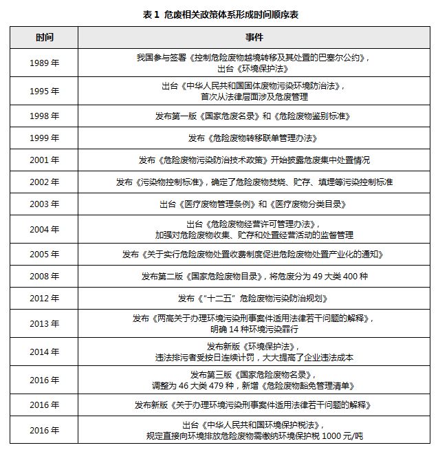 至2017年,危險(xiǎn)廢物治理法規(guī)體系日趨完善。體系形成的最大標(biāo)志之一是危廢監(jiān)管力度加大。2017年5月,環(huán)保部發(fā)布《“十三五”全國危險(xiǎn)廢物規(guī)范化管理督查考核工作方案》,提出建立分級負(fù)責(zé)考核機(jī)制,以省(區(qū)、市)為主組織考核,國家對全國的規(guī)范化管理情況進(jìn)行抽查。在落實(shí)主體責(zé)任的前提下,進(jìn)一步加強(qiáng)危廢監(jiān)管。