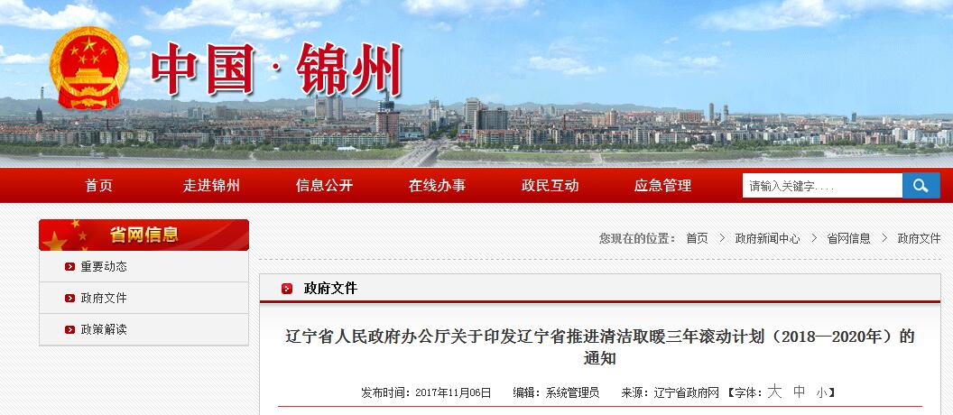 遼寧省推進(jìn)全省清潔取暖三年滾動計劃