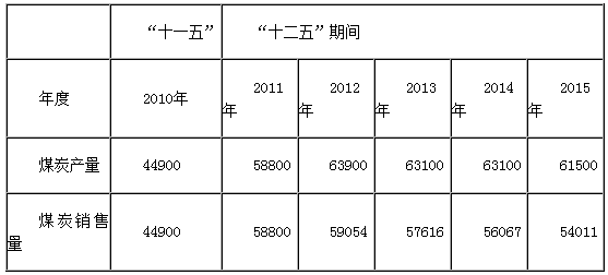 表1—2 鄂爾多斯市“十二五”煤炭產(chǎn)量