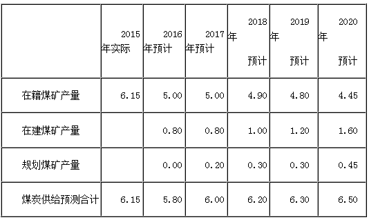 表2—3 “十三五”煤炭產(chǎn)量預(yù)測表