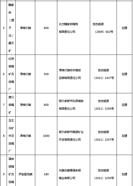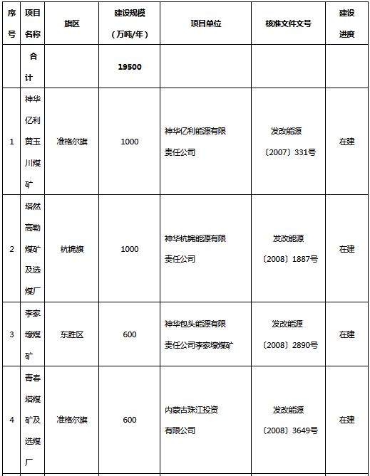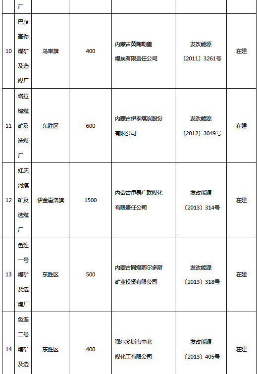 附件:鄂爾多斯市“十三五”續(xù)建煤礦項目表