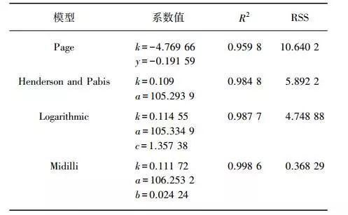 2.3.1干燥模型常見的污泥薄層干燥模型如表1所示。
