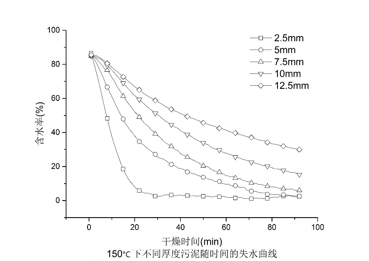 本試驗對大質(zhì)量的桐鄉(xiāng)市政污泥在50~150 ℃下不同厚度的間壁式熱干燥特性進行了研究,得到污泥干燥速率的影響因素,以及含水率隨時間變化的動力學(xué)模型,為實際的污泥處理提供了理論依據(jù),具有一定的實際意義。