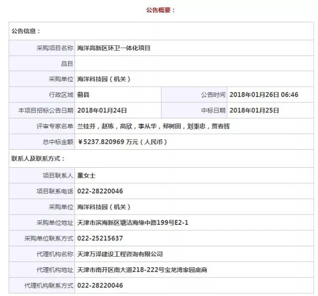 1月26日,據(jù)中國政府采購網(wǎng)消息,桑德環(huán)衛(wèi)中標天津塘沽海洋高新區(qū)環(huán)衛(wèi)一體化項目,服務期限為3年,中標金額約5237.82萬元。