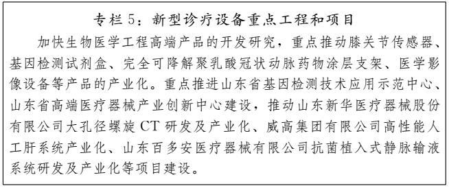 加快生物醫(yī)學(xué)工程高端產(chǎn)品開發(fā),推動(dòng)組織工程與生物技術(shù)融合創(chuàng)新,發(fā)展個(gè)性化人工器官和器械增材制造(3D打?。┊a(chǎn)品。推動(dòng)開展植介入醫(yī)療器械、高性能醫(yī)療設(shè)備、骨科植入材料、心臟介入器械、藥物涂層支架開發(fā)及推廣。開發(fā)高性能醫(yī)療設(shè)備與核心部件,重點(diǎn)發(fā)展高品質(zhì)影像設(shè)備、醫(yī)用機(jī)器人、腫瘤診療裝備,推動(dòng)新型醫(yī)療設(shè)備向網(wǎng)絡(luò)化、數(shù)字化、移動(dòng)化方向發(fā)展。推動(dòng)基因檢測(cè)發(fā)展,研發(fā)新型診斷試劑產(chǎn)品。