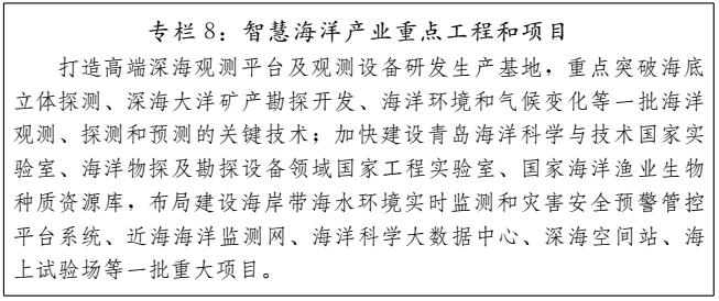 ?。ㄎ澹┈F(xiàn)代海洋產(chǎn)業(yè)。拓展海洋智能信息化及海洋服務(wù)業(yè)發(fā)展新空間,培育一批前瞻性產(chǎn)業(yè),構(gòu)建低消耗、低污染、高收益的現(xiàn)代海洋產(chǎn)業(yè)體系,鞏固擴(kuò)大走在全國(guó)前列的優(yōu)勢(shì)地位。