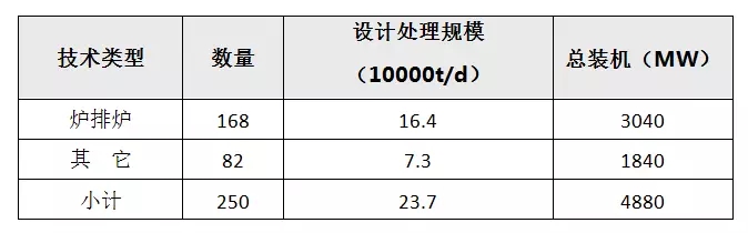 根據(jù)中國環(huán)聯(lián)研究院數(shù)據(jù)統(tǒng)計,截至2016年年底,投入運行的生活垃圾焚燒發(fā)電廠有250座,總處理能力為23.7萬噸/日,總裝機約為4880MW。其中采用爐排爐的焚燒發(fā)電廠有168座,合計處理能力達到16.4萬噸/日,裝機達到3040MW;其余主要為采用流化床的焚燒發(fā)電廠,總計有82座,合計處理能力為7.3萬噸/日,裝機達到1840MW。