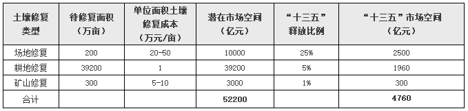 “十三五”期間土壤修復(fù)市場空間測算