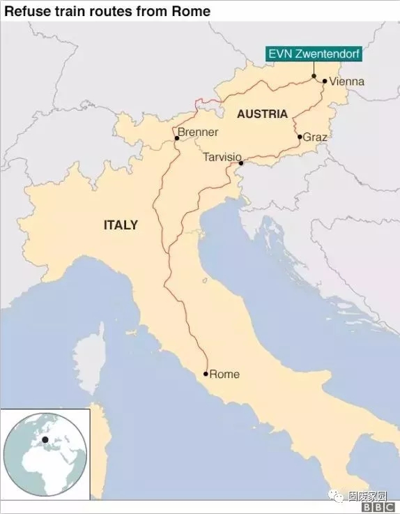 羅馬也為垃圾問題頭痛,2017年 4 月羅馬和奧地利政府達成合約,將通過火車運送 7萬噸羅馬的垃圾到奧地利,每周運送 3 輛。