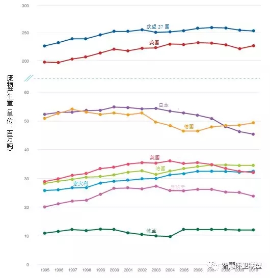圖3. 部分高收入國家1995年~2010年期間的廢物產(chǎn)生量