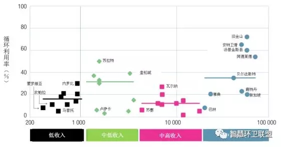 圖8. 39個不同收入水平的城市的回收利用率*
