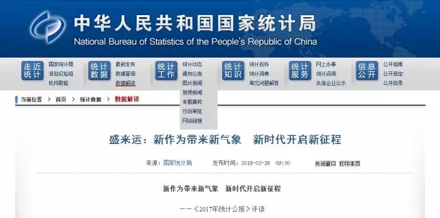 國(guó)家統(tǒng)計(jì)局網(wǎng)站28日公布《2017年國(guó)民經(jīng)濟(jì)和社會(huì)發(fā)展統(tǒng)計(jì)公報(bào)》,筆筆數(shù)據(jù)記錄了全國(guó)各族人民拼搏奮進(jìn)的累累碩果,張張圖表展示了黨的十八大以來(lái)我國(guó)發(fā)展取得的歷史性成就、發(fā)生的歷史性變革。