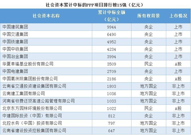 民營企業(yè)累計中標(biāo)PPP項目15強分析
