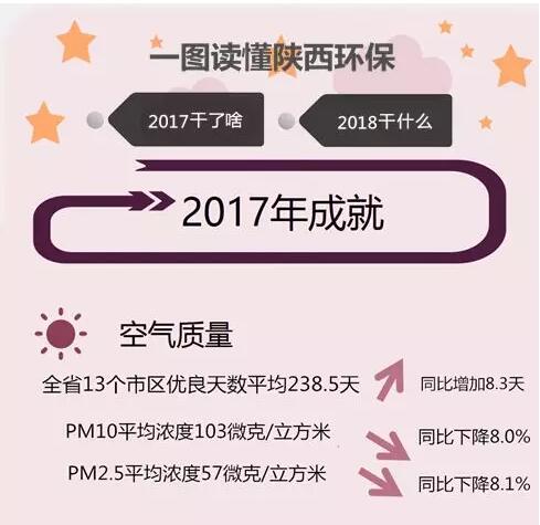 陜西省2017年環(huán)保都做了些什么?大氣污染治理、水環(huán)境治理、環(huán)保督察等方面取得了哪些成果?2018年目標為何?下圖帶你讀懂陜西環(huán)保2017年成果與2018年目標。