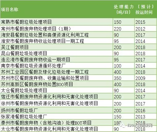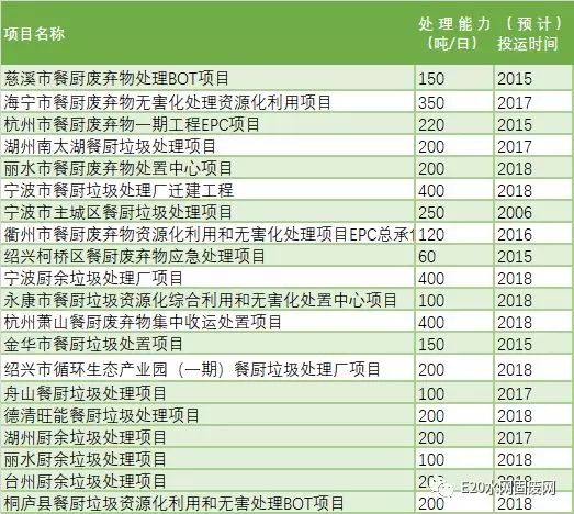 據(jù)E20研究院統(tǒng)計,截止到2017年11月,江蘇省已建(含在建)餐廚垃圾處理項目共計18個,設(shè)計處理能力為3300噸/日。浙江省則建有餐廚、廚余垃圾處理項目20個,處理能力達4300噸/日。