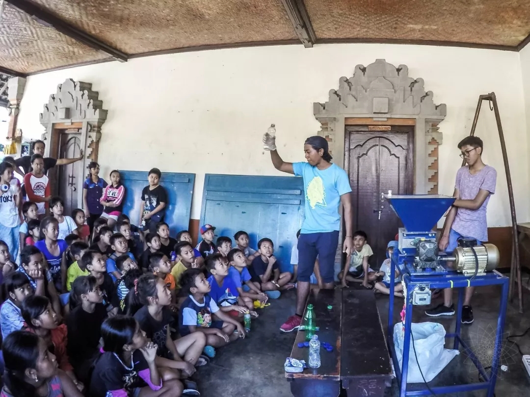 在印度尼西亞,教孩子們回收的常識(shí)。