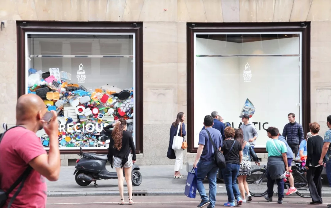 為了支持他們,阿姆斯特丹女王店還將落地櫥窗景觀改造成了塑料回收窗。