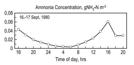又如下圖所示,在距離某部分硝化的污水廠出水口1.5km的某河里的氨氮濃度晝夜差異。溫度、pH和氨氮負(fù)荷受到陽光的同步作用導(dǎo)致了這里的有毒物質(zhì)濃度的極端變化。